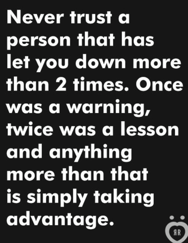 trust, but who don't live up to what we expect (let us down). This is the wisdom of the world, "if someone doesn't prove to live up to what you expect, throw them away". TH - 15/09/13 16:34